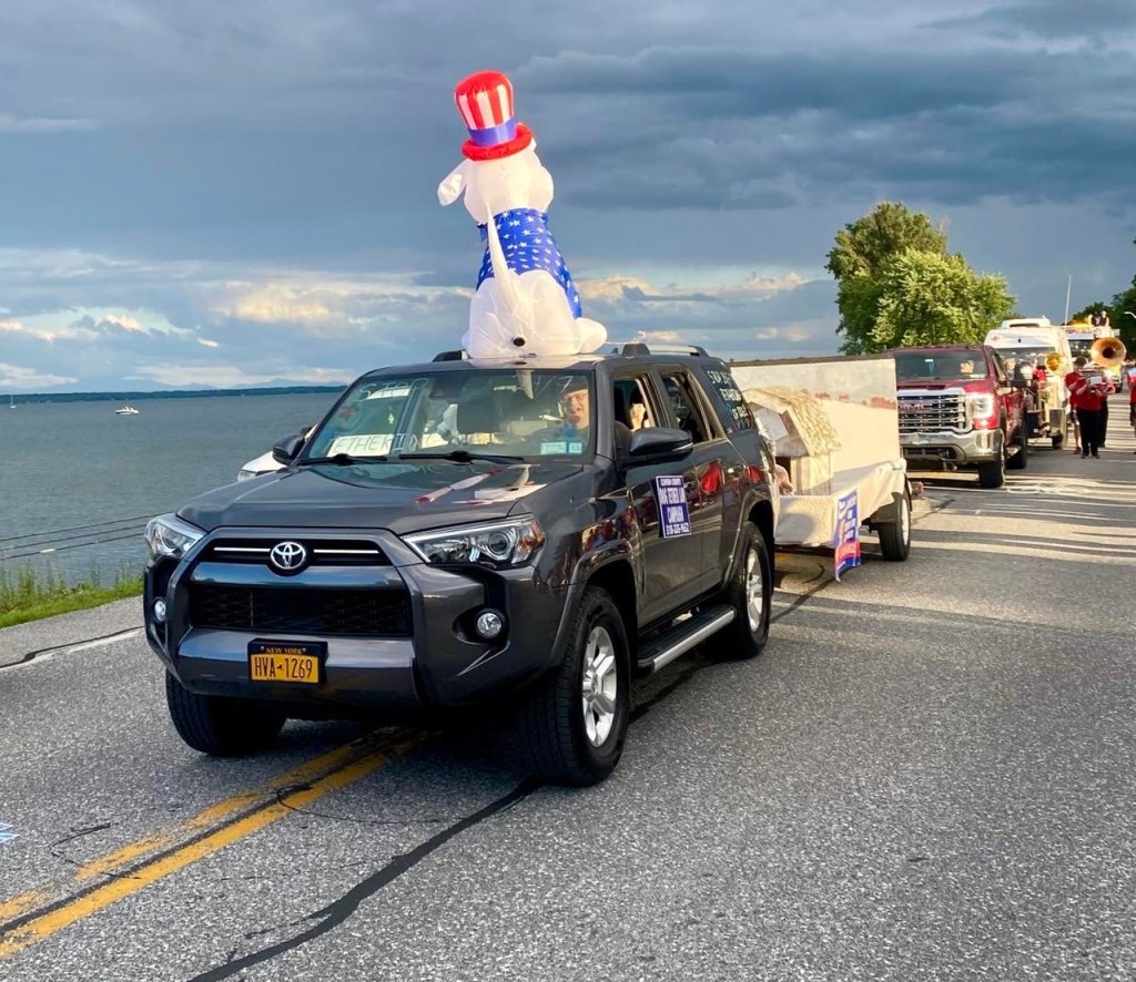 The City of Plattsburgh 4th of July parade where we were literally cut right out of the parade video by Calvin Castine. I guess he didn’t like our sign that said “Legislators fighting us hard.” and his name was included.