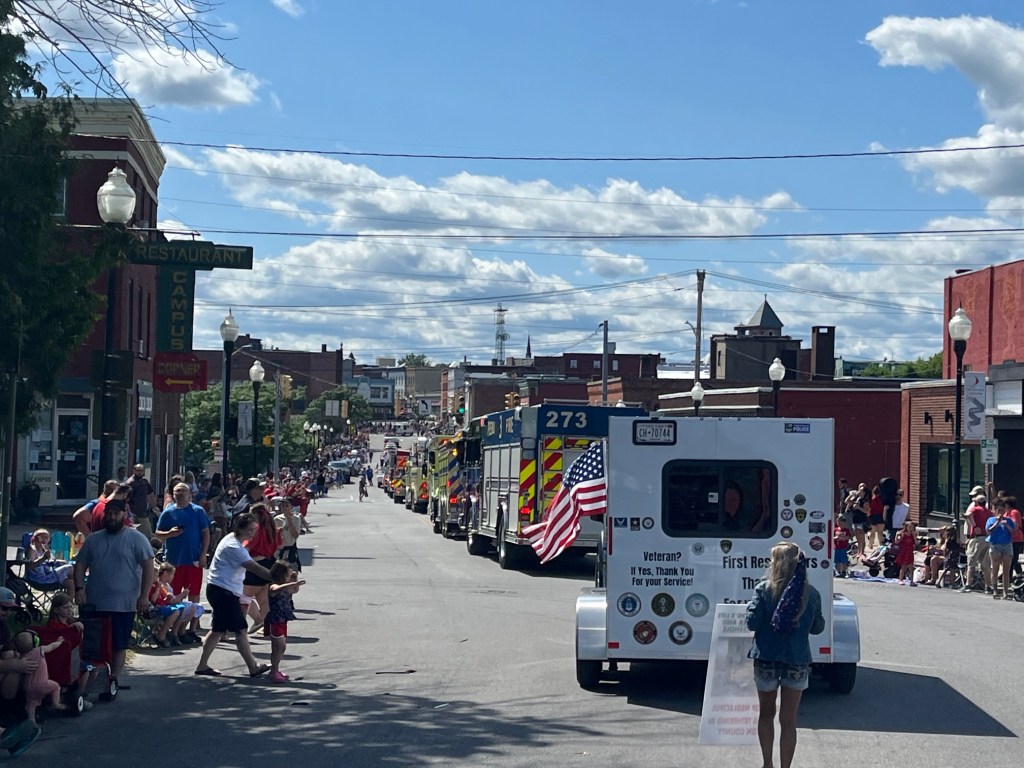 We registered over a month ago for the parade and when we got there, we weren’t on the list. Interesting that Calvin Castine said he checked on whether we were registered… The Peru fire department wasn’t on the list when they arrived either, but he had no problem introducing them in the parade.