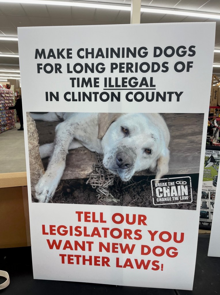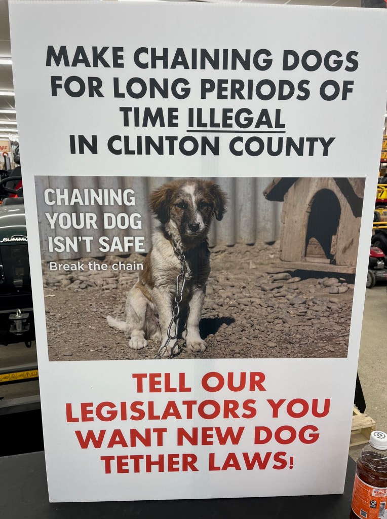 A lot of people have advocated for a Dog Tethering Law in Clinton County. Advocates have attended countless legislature meetings, signature events, parades, and town meetings. Supporters have spent a lot of time and hard earned money to try and bring our county animal cruelty laws up into the year 2025. It may look like we are having fun, but the reality is we are fighting for a common sense law and having to fight way too hard. While we are working so hard, many of the legislators can’t be bothered to read a law, provide any feedback whatsoever, or do any research! The legislators are the ones who were elected and are getting paid! Many of our current elected officials need to be replaced and voted out in the upcoming elections!